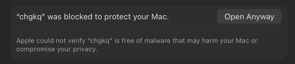 Просто запустите скачанный файл. На macOS после первой попытки запуска вам понадобится зайти в System Settings → Privacy & Security и нажать кнопку Open Anyway, чтобы разрешить запуск. Первый запуск может занимать пару минут, поскольку программа будет скачивать и настраивать всё необходимое. Дальше должно запускаться быстро.